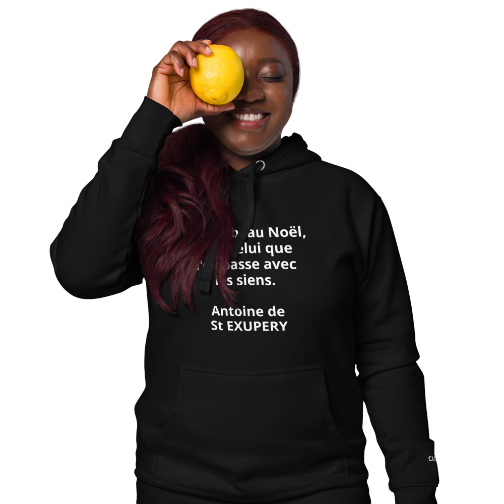 Sweatshirt unisexe avec la citation d'Antoine de St EXUPERY "Le plus beau Noël, c'est celui que l'on passe avec les siens"