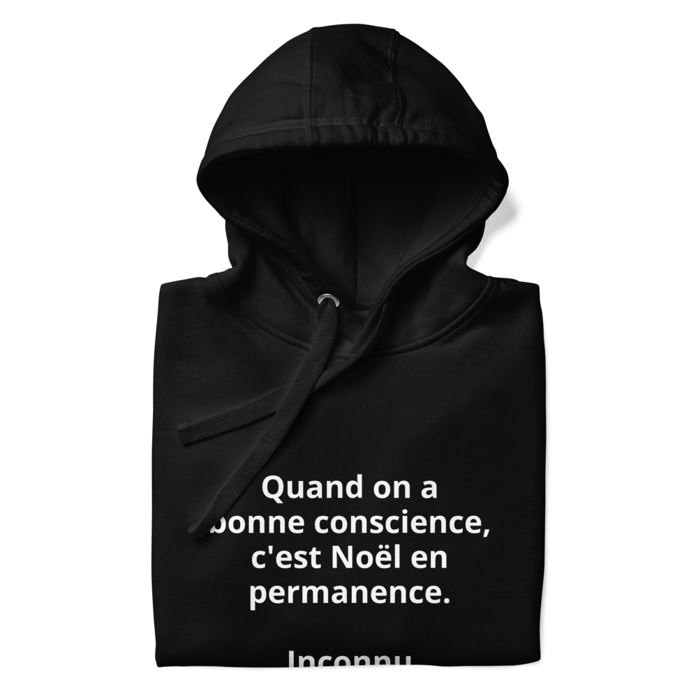 Sweatshirt unisexe avec la citation "Quand on a bonne conscience, c'est Noël en permanence"